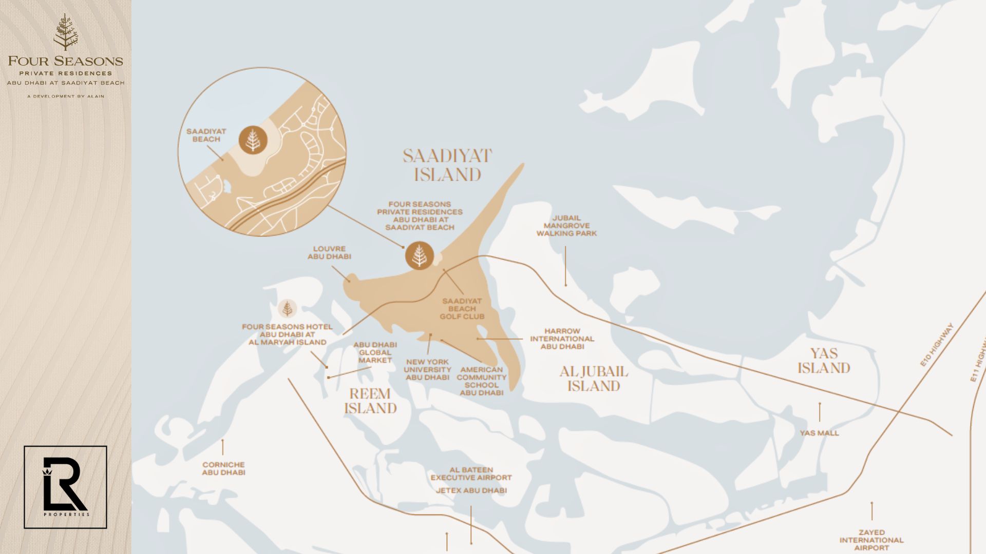 Four Seasons Private Residences Saadiyat Island presents a new paradigm of waterfront luxury in Abu Dhabi. A collaboration between ALAIN Asset Management and Four Seasons Hotels & Resorts, this development fuses globally recognized hospitality with bespoke residential craftsmanship. Situated on Saadiyat Island, this elite enclave offers an unmatched combination of gulf-facing and golf-course-facing homes, designed for privacy, elegance, and immersive living.