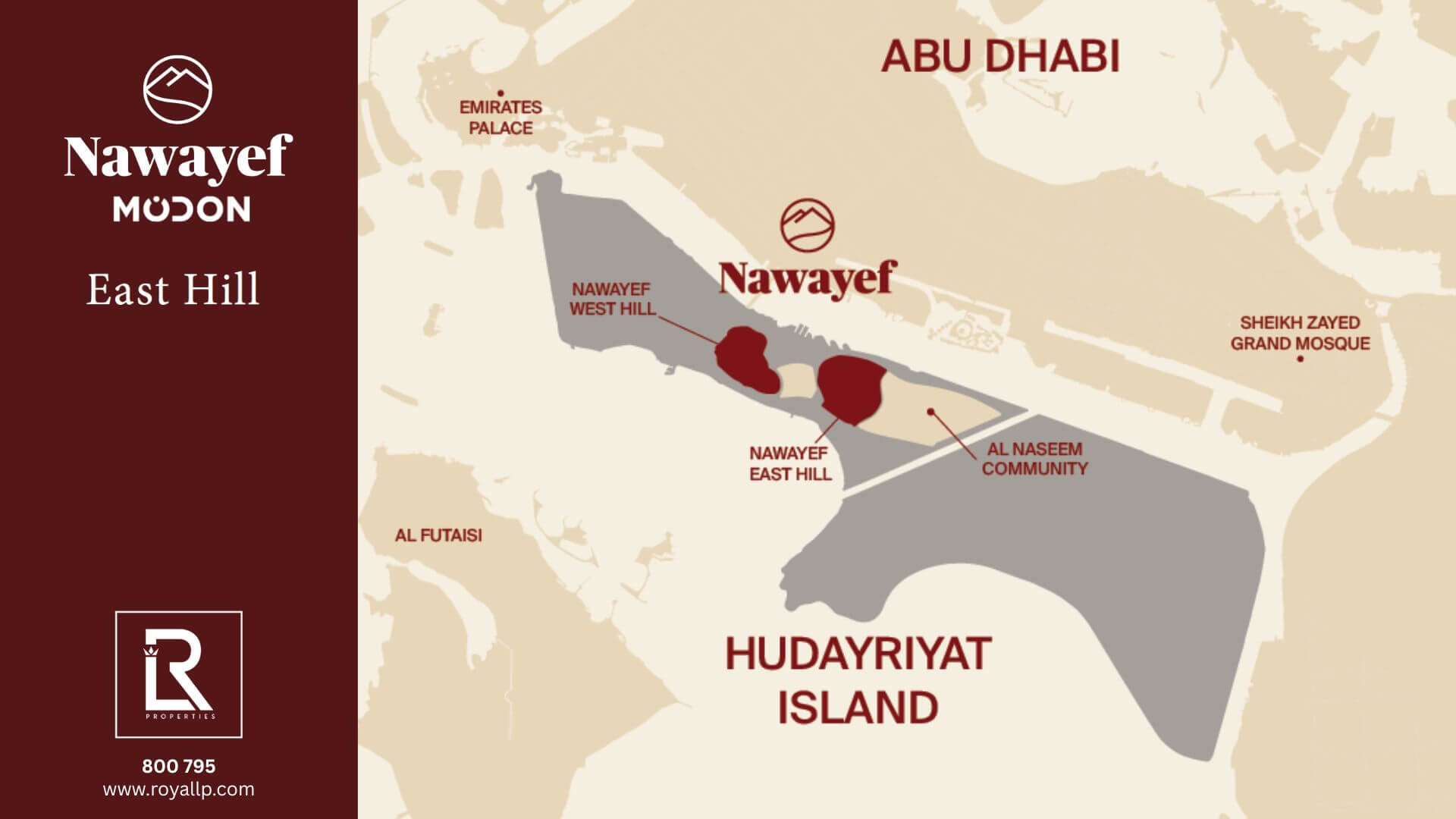 Nawayef East, the latest luxurious launch on Hudayriyat Island by Modon Properties—a breathtaking elevated community redefining waterfront living in Abu Dhabi. Carved into rolling hills that reach up to 60 meters above sea level, this exclusive destination offers unmatched views across the Abu Dhabi skyline and the shimmering Arabian Gulf.