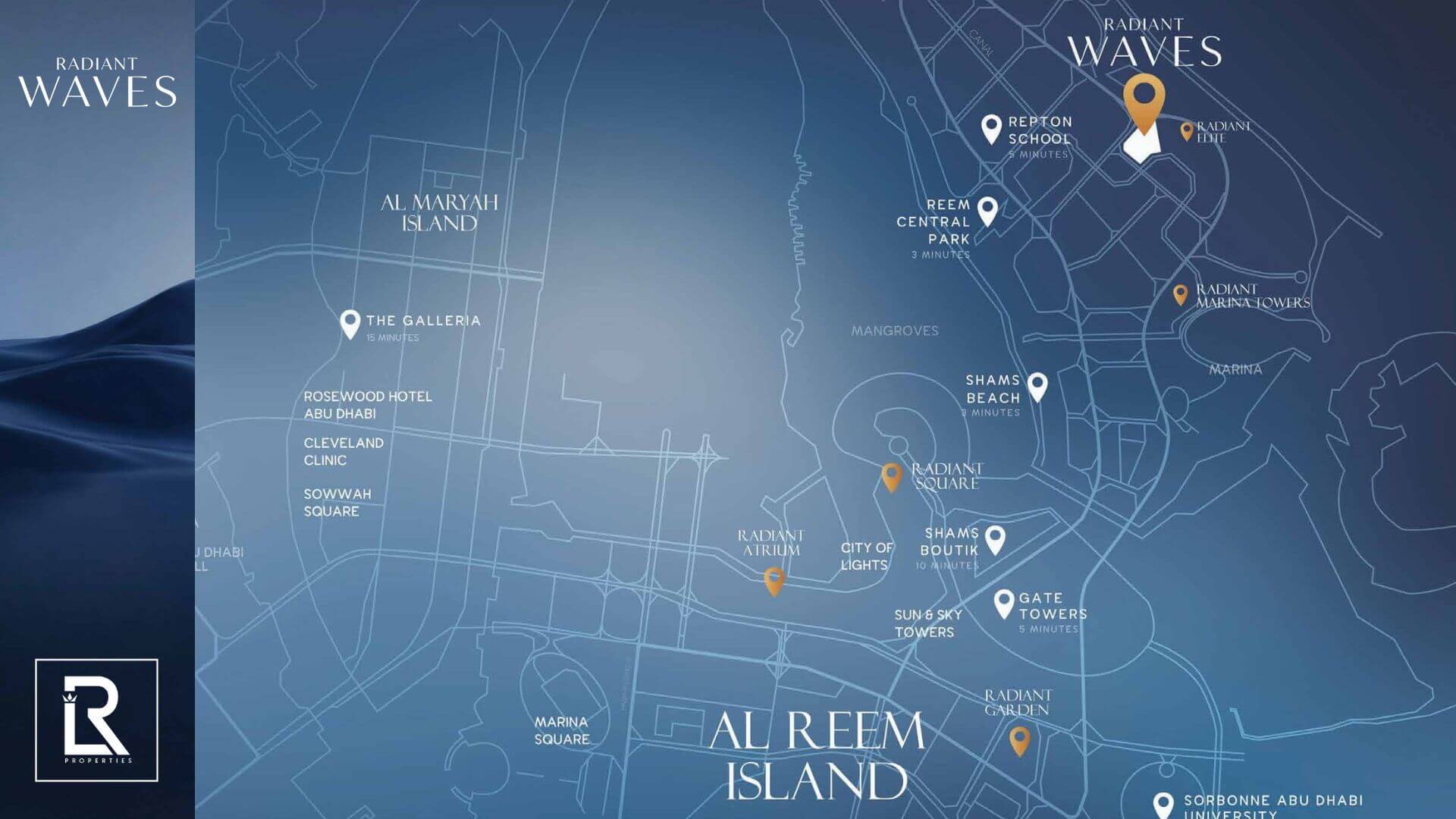 Radiant Wave by Radiant Enterprises Real Estate is a striking 45-story residential tower designed to embody modern coastal luxury on Abu Dhabi’s vibrant Al Reem Island. Featuring a graceful arc-shaped facade and canal-facing orientation, this development blends architectural distinction with intelligent design. The project presents an impressive collection of over 640 residences ranging from studios to four-bedroom penthouses, with select duplexes and sky villas offering private pools and panoramic sea and skyline views.